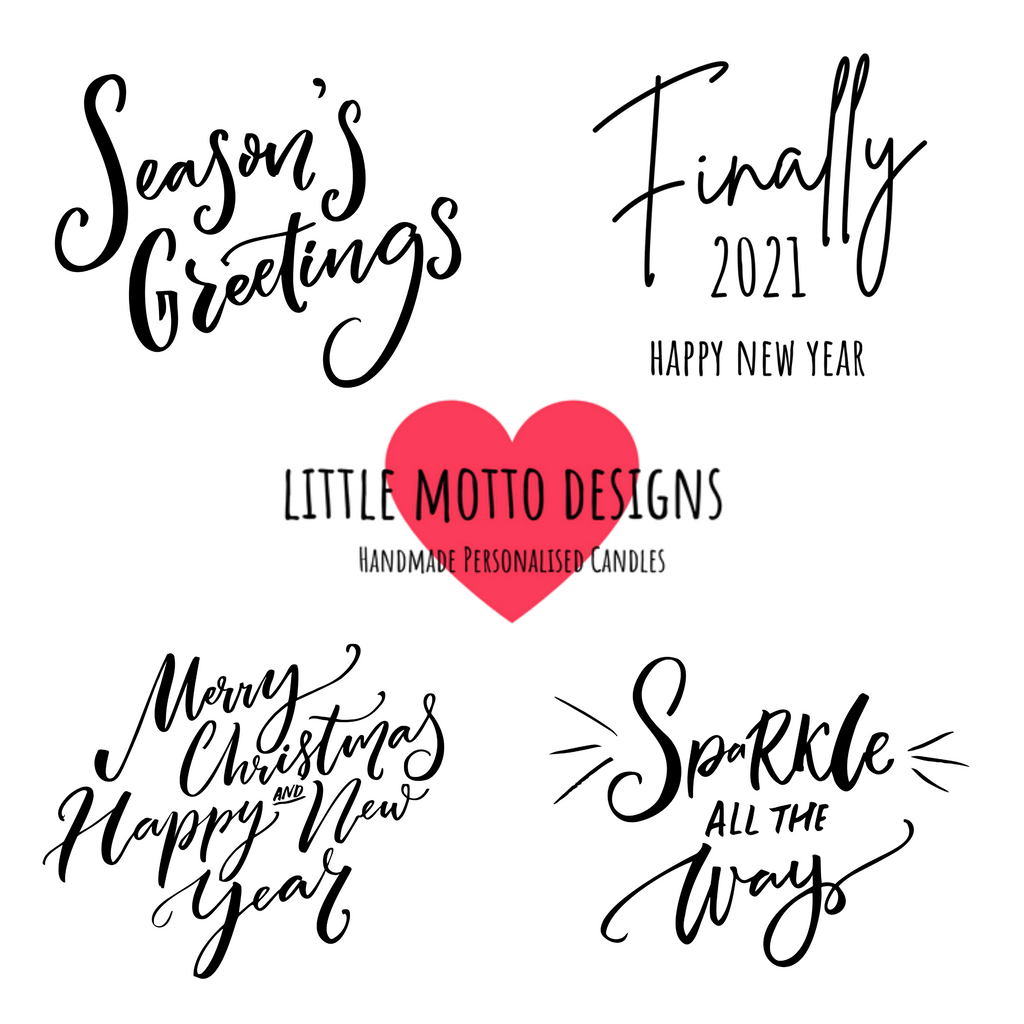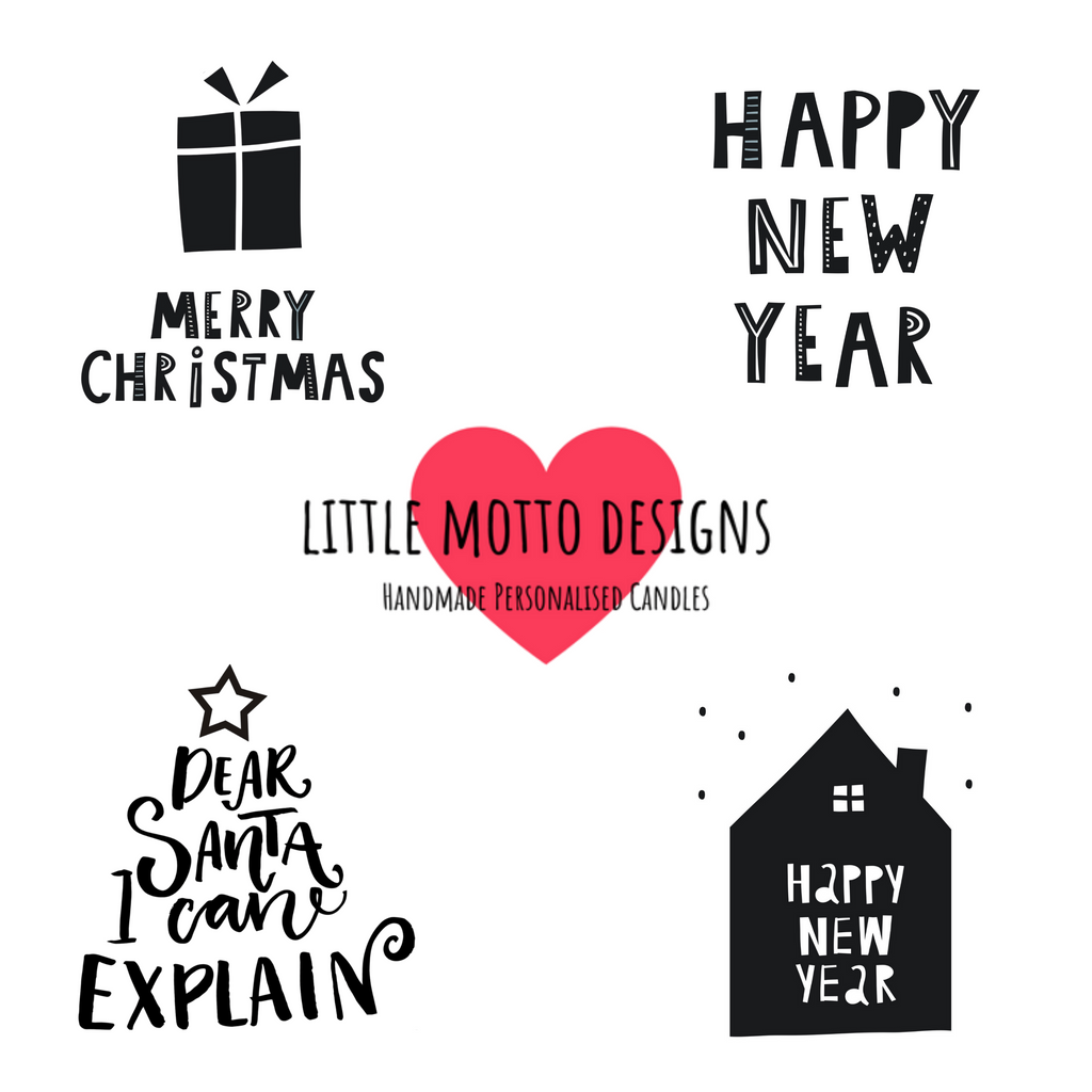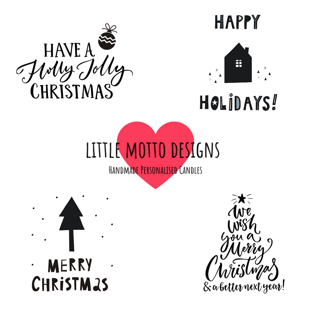Please detail your personalised message and preferred font in the comment box at checkout. Or alternatively choose from one of our custom label design options. We will send you an artwork approval before making the candle. Email any photos or logos to info@littlemottodesigns.com.au. Please quote your name and order number in the email.