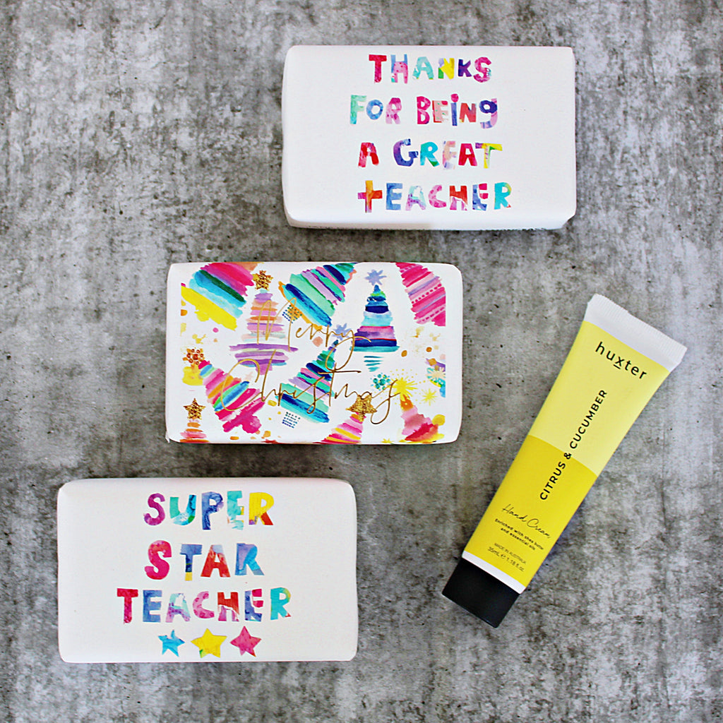 TEACHER CHRISTMAS Mini Custom Hamper | PERSONALISED | Chocolate, Hand Cream & Soap Gift Pack | Thank You | Christmas | Kris Kringle